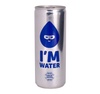 Latas de agua personalizada de 250 ml tipo slim. 5,2 x 13,4 cm. Con etiqueta adhesiva a todo color, impresión directa a un color o impresión directa en cuatricomía.